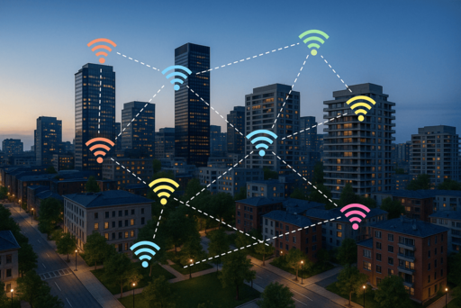Dans les smart cities, la communication se fait dans les normes radio les plus diverses. Par exemple par LoRa, LoRaWAN, dans la bande ISM, dans la norme Matter, par Bluetooth ou BLE, en Sigfox, ZigBee et autres normes.